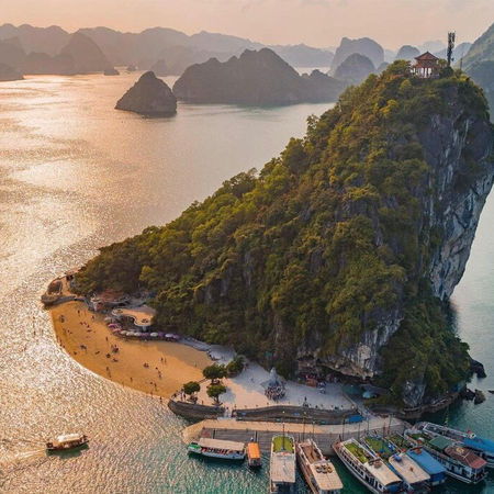 The journey continues to Titop Island, where you can relax on the sandy beach or challenge yourself with a climb to the island's peak. Your reward? A breathtaking panoramic view of Halong Bay that will leave you speechless.