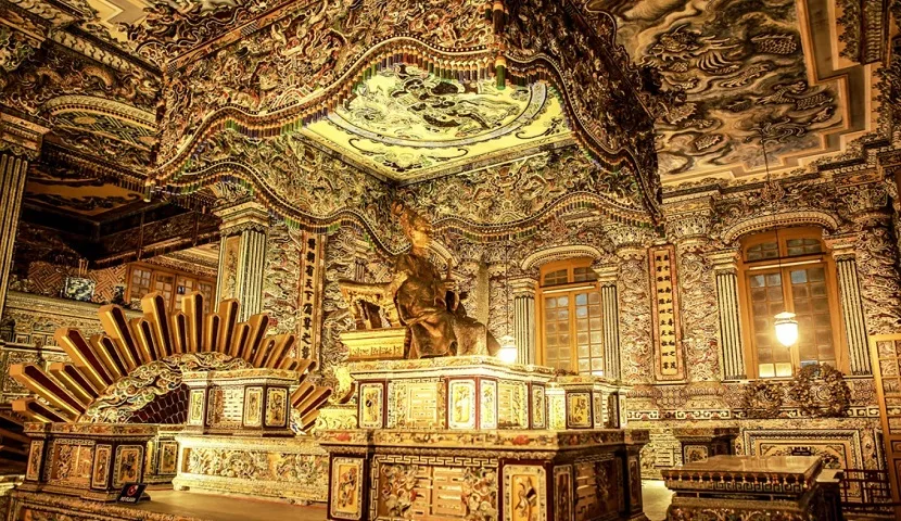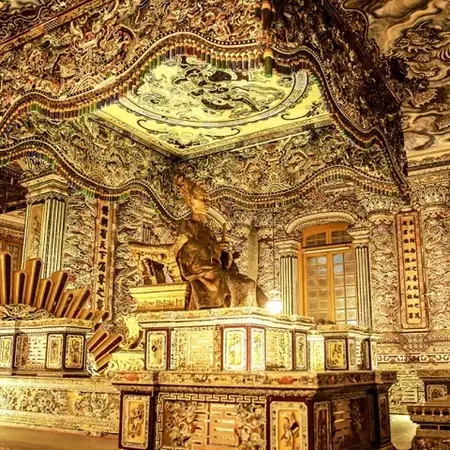 13:30 pm: After lunch, continue to visit Minh Mang Tomb - a unique mausoleum with nature surroundings and Khai Dinh Tomb - a blend of Western and Eastern architecture.